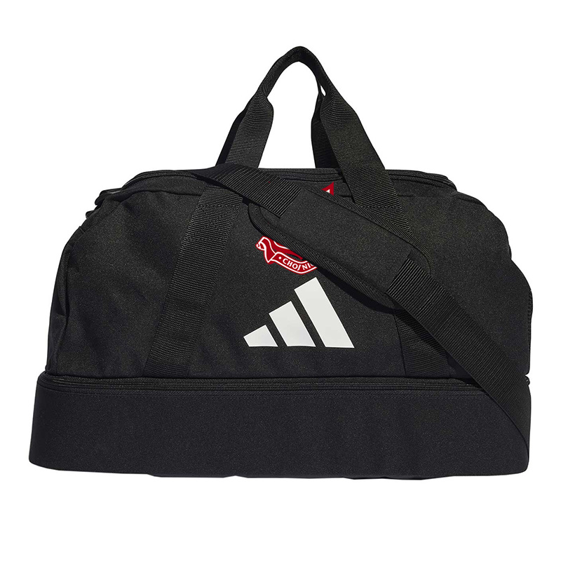 Torba sportowa adidas to uniwersalny model, który sprawdzi się w czasie weekendowego wypadu za miasto, czy w drodze na trening. Główna komora z dwubiegunowym suwakiem. Regulowany pasek na ramię z nakładką. Plecione rączki. Dolna kieszeń na obuwie lub brudną odzież. Boczna kieszonka z siateczki. Dane techniczne: · wymiary: 48 cm x 28 cm x 27 cm · pojemność: 30,75 l · materiał: 100% poliester z recyklingu